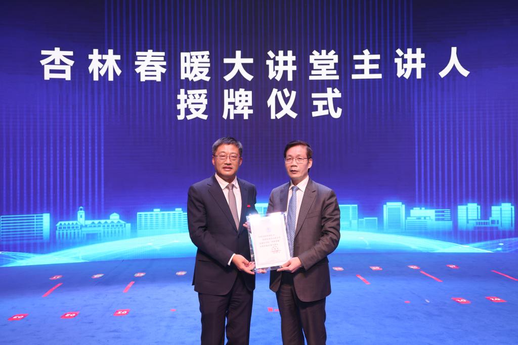 校长陈卫为中国科学院院士、上海交通大学教授陈国强颁发杏林春暖大讲堂主讲人证书