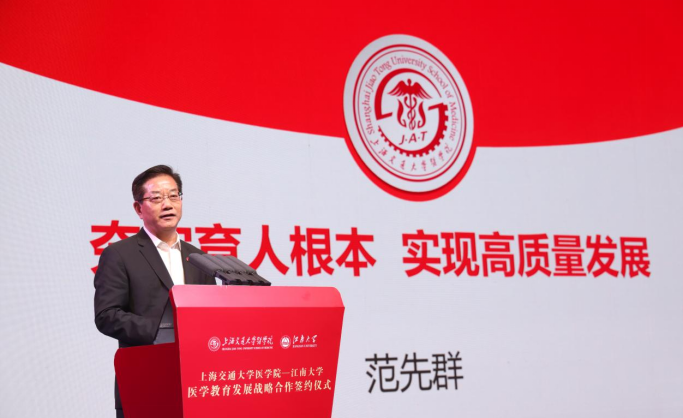 吴正国为签约仪式作总结讲话。他提出三点要求:一是要全面推动战略协议落实落细,认真落实国务院办公厅50精神和学校第五次党代会精神,力争做到“五个更加”;二是要扎实推进人才联合培养项目,依托交大医学院的先进教学理念和优势师资,深化医学学科提档升级和卓越医师培养的教育教学改革;三是要深化落实联合导师培养项目,以临床医学联合博士生导师项目为抓手,围绕临床教学改革、临床科研及转化、临床诊疗技术提升等拓展合作,带动医院专学科实现更高质量发展,全面提升服务地方医疗卫生事业发展的能力。