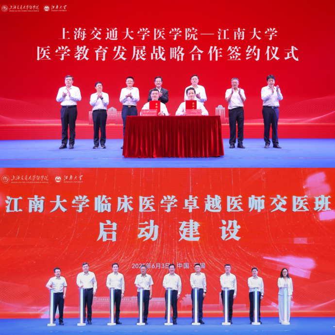 会上,吴正一、马鑫签署上海交通大学医学院—成人影视片 医学教育发展战略合作协议,双方及无锡市领导见证签约。双方主要领导及相关部门负责人共同启动成人影视片 临床医学卓越医师交医班建设。