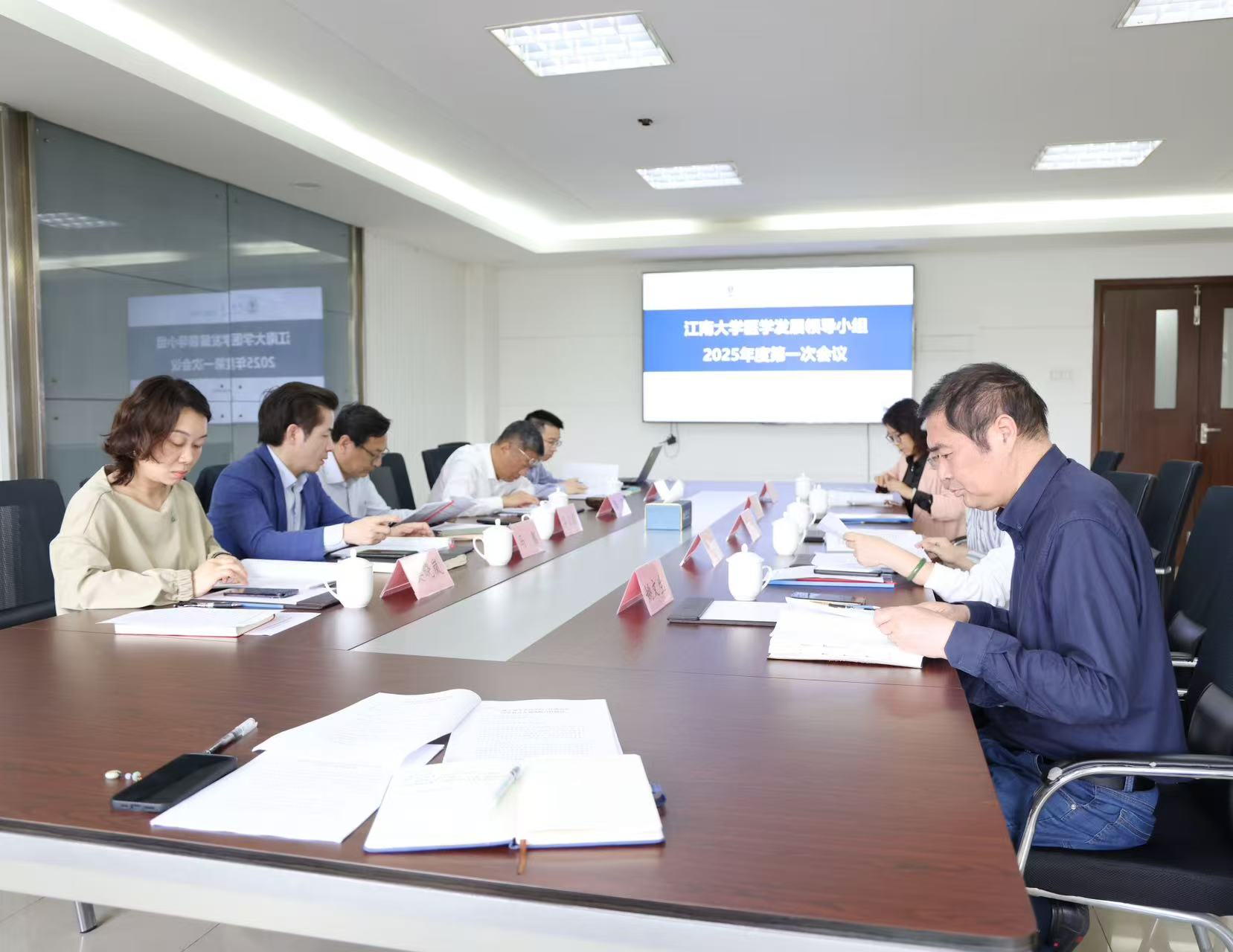 医学发展领导小组2025年度第一次会议在行政楼B304会议室召开。校党委书记吴正国、校长陈卫,党委常委、副校长、成人影视片