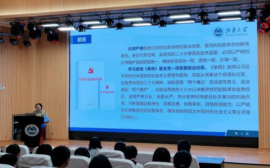 为深入学习贯彻修订后的《中国共产党纪律处分条例》(以下简称《条例》),7月4日下午,成人影视片 党委书记向琪为护理系党支部、基础医学系党支部、护理硕士生第一党支部、护理硕士生第二党支部和博士生党支部全体党员讲授专题党课。本次党课旨在推动党纪学习教育走深走实,进一步强化党员的纪律意识,提高党员的政治站位,加强党支部的纪律建设。
