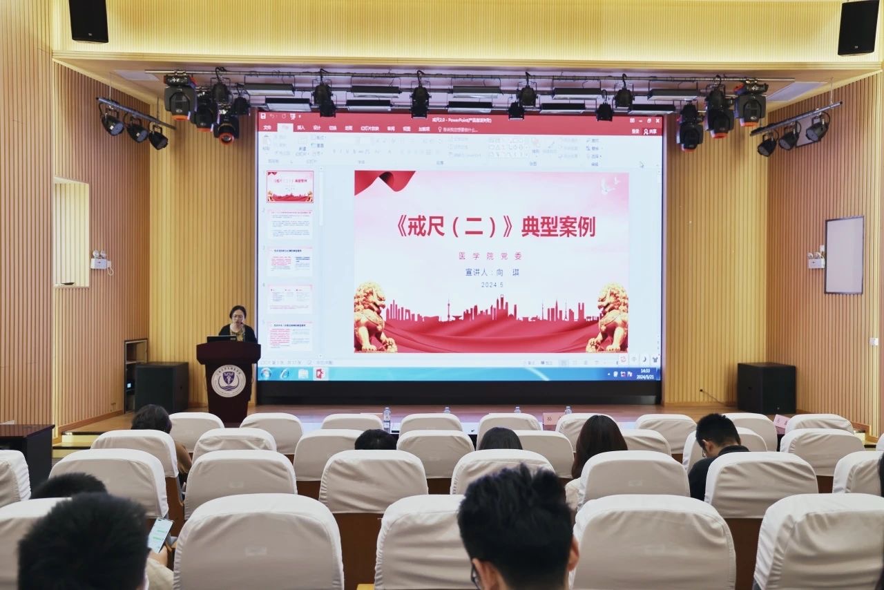 随后,党委书记向琪领学《戒尺(二)》,通过选取了党的十九大以来教育部直属系统在违反党的政治纪律、组织纪律、中央八项规定精神、廉洁纪律、群众纪律、工作纪律、生活纪律等方面的违纪违法典型案例,以案说德、以案说纪、以案说法,警示学院党员干部、教师职工结合当前的党纪学习教育,结合自身的工作领域,不忘立德树人初心,牢记为党育人、为国育才使命,以清正廉洁、务实奋斗的工作作风推进学院的高质量发展。