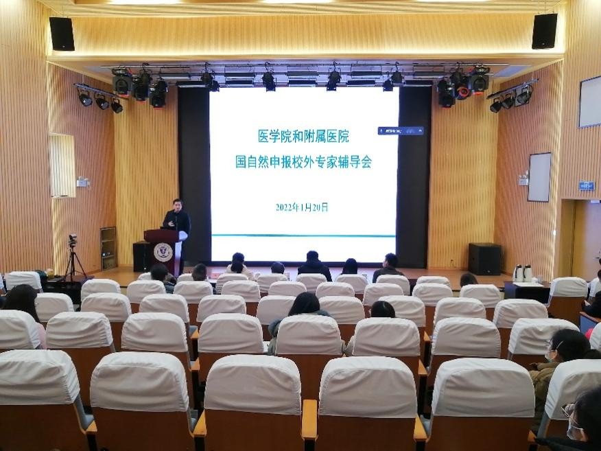 基金申报校外专家集中辅导线上线下结合。2022年1月20日,医学院/附属医院2022年国家自然科学基金申报校外专家辅导会在医学院C101学术报告厅和三楼A区教室举行。上海交通大学郭锡熔教授团队应邀出席。医学院、附属医院的教师、科研人员30余人参加辅导会。辅导会由医学院院长马鑫教授主持。