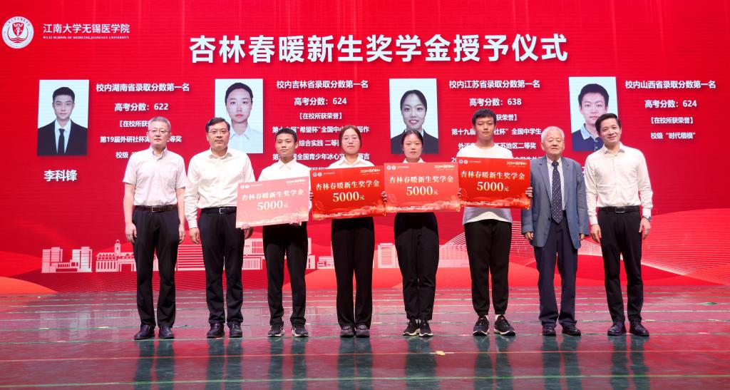 临床医学本科招生,有4个省市录取了校内排名第一的最高分。为表彰优秀,树立典型,学院继续特设“杏林春暖”新生奖学金,邱贵兴、马鑫、笪学荣、孙宁共同为江苏省顾清源、吉林省王睿、湖南省李科锋、山西省孙渤越等4个省市录取校内排名第一的同学颁发了2024年成人影视片
