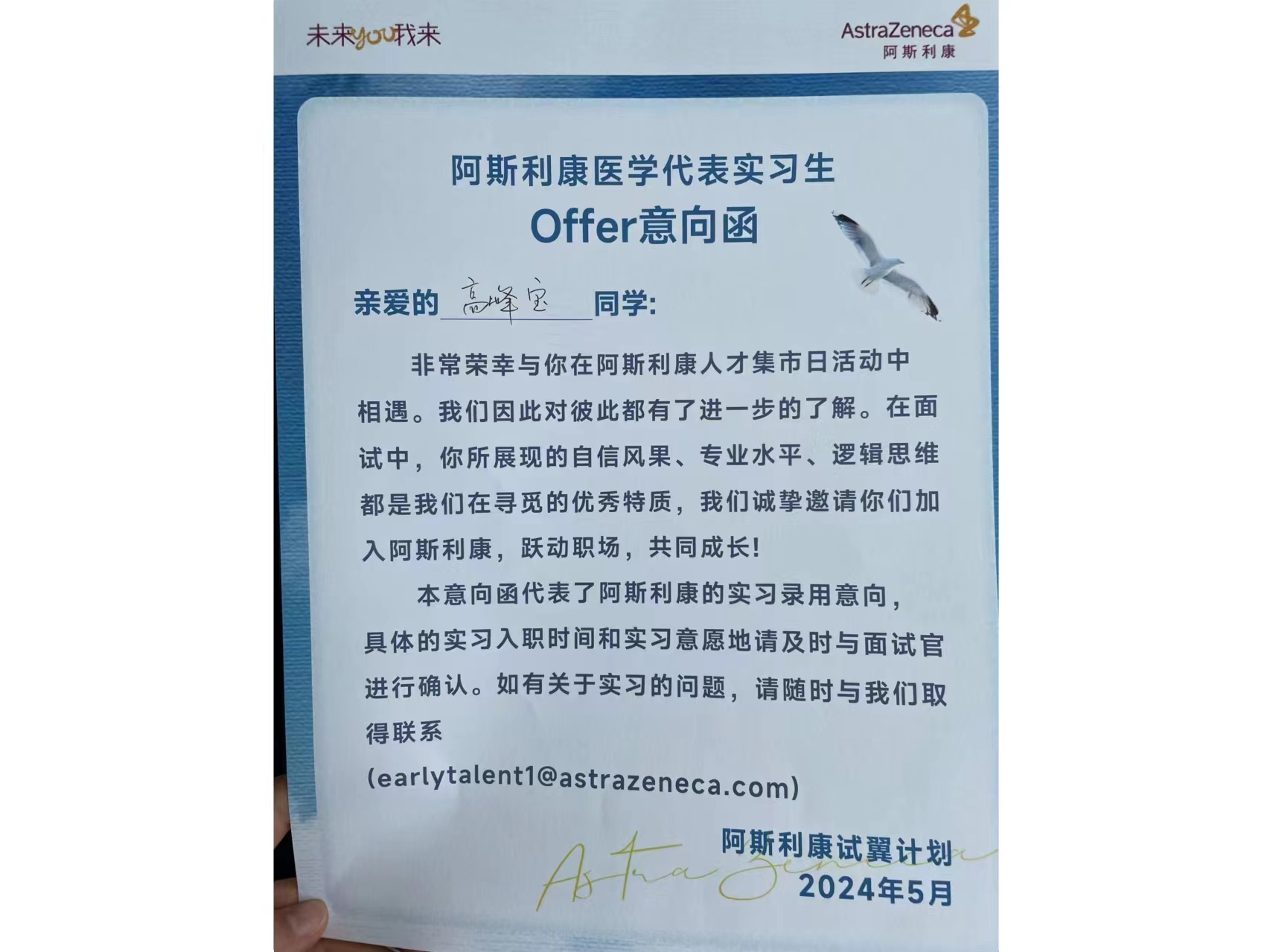 护理2101班高峰宝现场拿到实习生offer