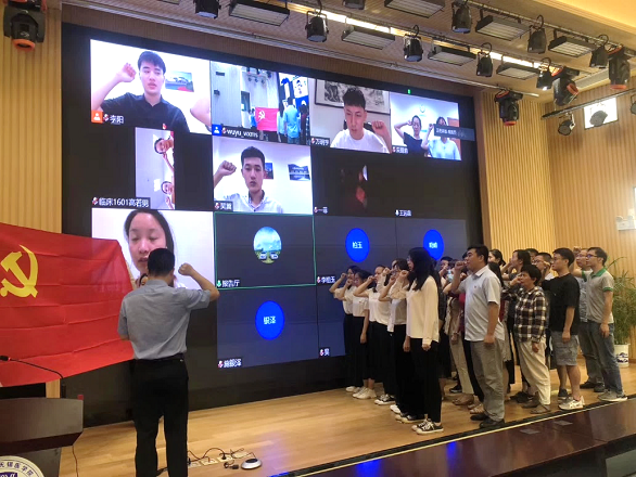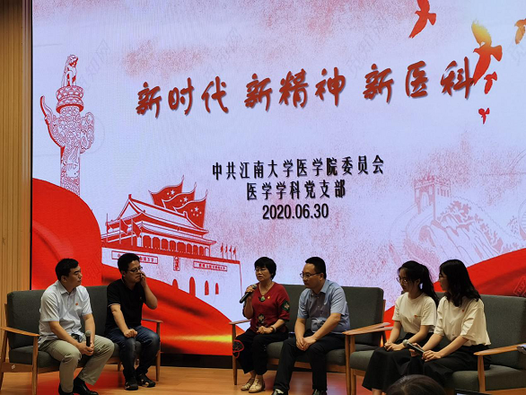 党委组织部、党委宣传部《关于开展基层党组织常态化疫情防控“四个一”行动的通知》,医学院医学学科党支部结合支部实际,在学院党委的指导下,6月30日晚上在医学院C101报告厅举办战“疫”示范微党课活动,此次活动包括三个部分:一、全体党员重温入党誓词;二、战“疫”微党课;三、开展“新时代、新精神、新医科”座谈会。此次活动采用线上线下混合式会议进行,由医学学科党支部书记柴高尚主持,医学学科党支部全体党员参加此次大会。