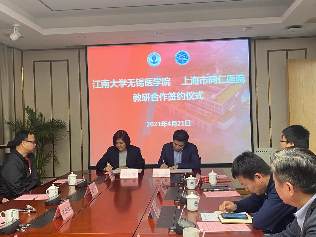 与上海市同仁医院教研合作框架协议签订仪式在医学院C106会议室举行。上海市同仁医院院长马骏、副院长盛慧明、副院长陶琨、院长助理郭锡熔、成人影视片