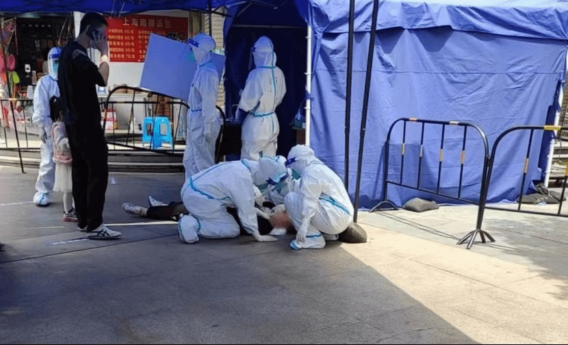 抗疫采样队员正在昆山市高新区大学园区社区开展核酸采样工作,当日天气炎热,参加测核酸的群众很多,这时突然有一名12岁的女孩晕倒,离其最近的4号采样点成人影视片