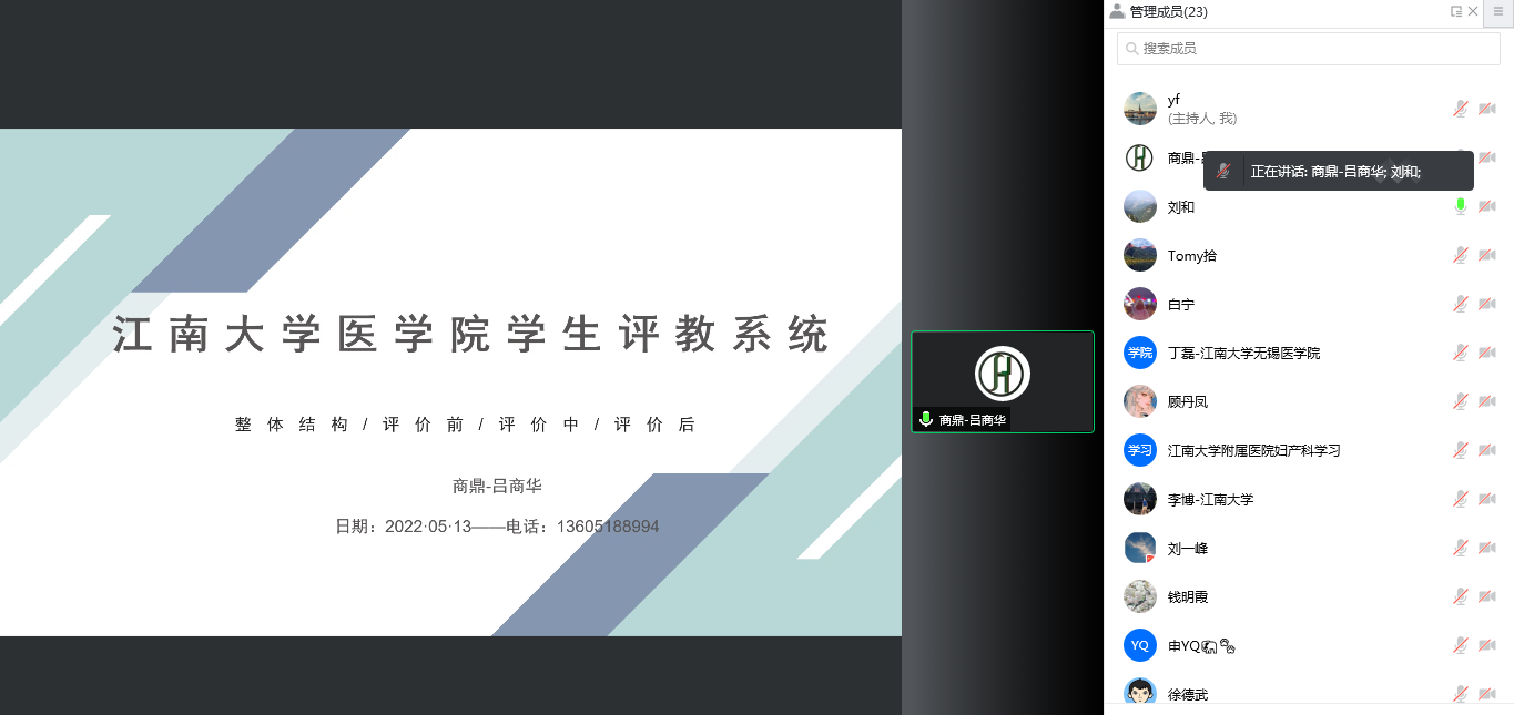 、附属医院教学评价一体化系统研发推进会在线上召开,医学院副院长赵鹏、附属医院教务处负责人及各教研室主任、医学院教师代表、教学评估与教师卓越中心负责人、上海商鼎软件科技有限公司代表参加了会议。会议由卓越中心主任刘和主持。