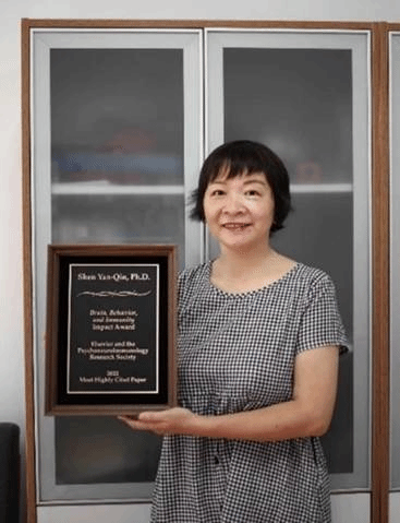 神经退行性疾病和神经损伤研究团队申延琴教授凭借2018年发表在国际权威期刊《Brain, Behavior, and Immunity》(即时IF=19.227)上的“Neuroprotective effects of fecal microbiota transplantation on MPTP-induced Parkinson’s disease mice: Gut microbiota, glial reaction and TLR4/TNF-α signaling pathway”科研成果,获得了由爱思唯尔和美国精神神经免疫学研究学会(Psychoneuroimmunology Research Society)颁发的“BBI Impact Award”奖。