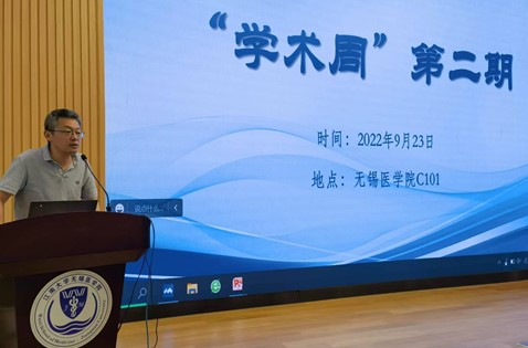 随后,主讲人庞庆丰教授开始了主题为《医学科研问题的形成和凝练》学术演讲,庞教授以自身为例,生动形象的展开了具有医学情怀的演讲,将医学科研问题的形成进行了凝练。演讲结束后,吴郁副教授对庞教授的精彩演讲进行了总结,吴郁副教授表示,庞教授的演讲充满情怀,以自身为比,生动形象的讲述了科研基金申请的相关注意事项。随后,一些教师与庞教授进行了深入交流,深入探讨。