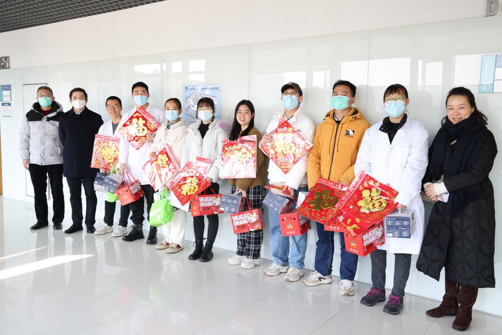 马鑫一行来到学院实验室,与留校学生进行了亲切交谈,了解每位同学的留校原因、科研进展以及在校生活情况,并送上新春慰问品,向留校学生致以节日的诚挚问候和新春的美好祝愿。马鑫表示,医学院有优越的科研环境,希望同学们能够追求卓越,向优秀的同学学习,好好利用这段时间追求更多的学术成就;学校有优美的校园环境,希望同学们在科研之余能够欣赏欣赏美景,放松心情,发现生活的美与好;学院还有一批关心大家的老师们,希望同学们遇到任何问题和困难,都要第一时间联系导师或辅导员,老师们会尽最大的努力为同学们提供帮助。他还叮嘱同学们在完成学习任务的同时要做好自我防护,注意人身和财产安全。