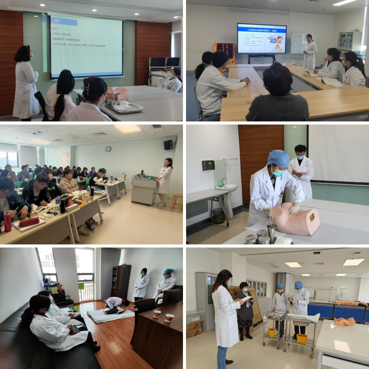 附属中心医院开展实习教学检查。首先,专家组召开实习工作汇报会议,附属中心医院副院长齐小莉、教育处处长姜宇、副处长胡真真、各教研室主任出席会议,骨干教师代表和实习生代表参加会议。会上,齐小莉副院长致欢迎辞,姜宇处长进行实习工作汇报,从医院介绍、教学概况、教学活动和教学成果四个方面详细介绍了附属中心医院实习教学情况。而后,专家组一行通过现场考察教学查房、病例讨论、小讲课、学生临床技能操作、召开实习生座谈会等形式,全面了解实习生在附属中心医院的实习情况及教学质量,并现场进行了细致点评。接着,专家就本次教学检查中发现的问题进行了反馈。最后,齐小莉副院长总结讲话,表示将针对专家反馈的问题逐一落实整改,进一步提高附属中心医院临床教学质量。