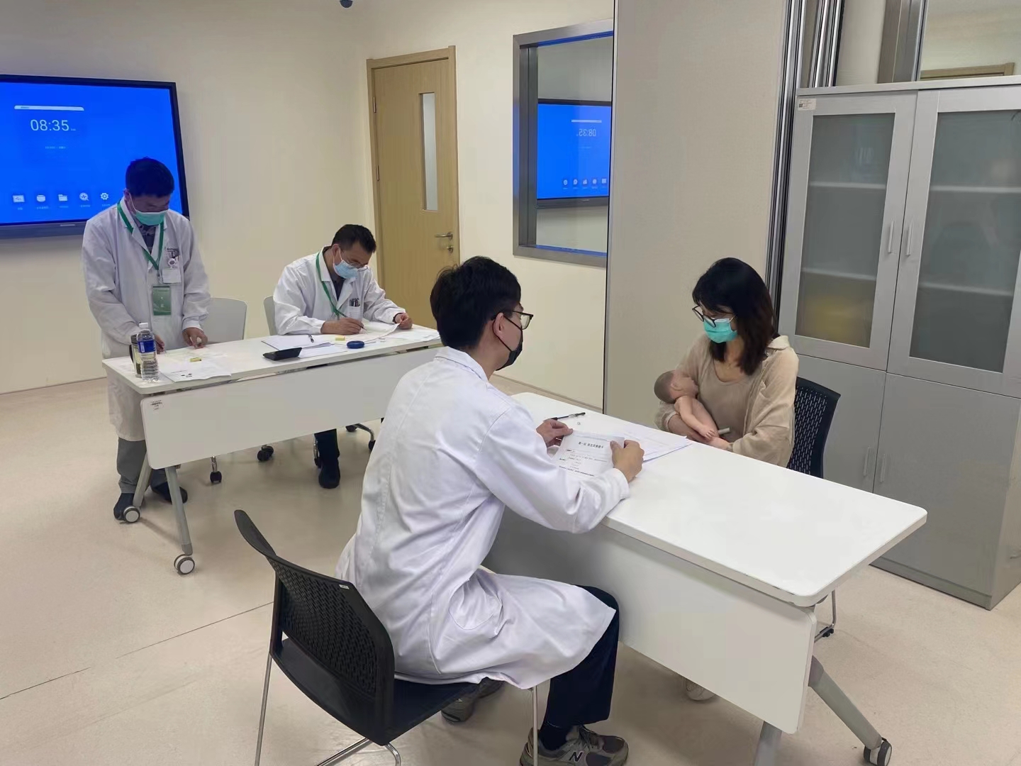 为了做好这次水平测试,医学院在考前召开水平测试动员大会,副院长程洋给考生作动员讲话,强调考风考纪,同时组织全体考生参与机考统一演练和自主演练。医学院和附属医院遴选25名考官、20余名技术、监考和考务人员、10余名学生志愿者参与工作,布置了2个机考考室和12个OSCE考站,多次召开考务会议,精心组织考官培训和SP培训,提前做好耗材物品准备工作。从考试流程设计、考场布置、考官培训到SP培训等各项考务工作,均严格按照国家医学考试中心的要求进行,确保考核工作公正、公平、规范、科学、有序。考场秩序井然,考官严肃认真,考务人员细心周到,各环节考试圆满完成。考试期间,医学院党委书记向琪和附属医院副院长陆华巡视考场。