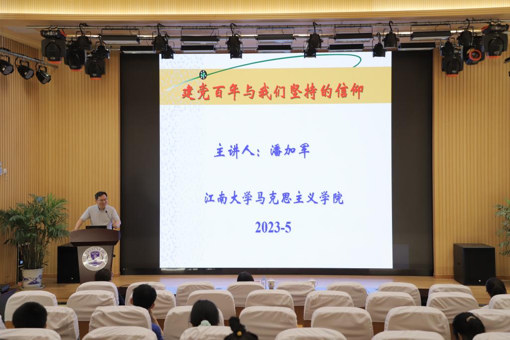 特邀马克思主义学院副院长、副教授潘加军在C101报告厅以《建党百年与我们坚定的信仰》为题做主题教育专题辅导报告。学院全体教职工、学生支部书记、支部委员参加了辅导报告会,活动由学院党委书记向琪主持。