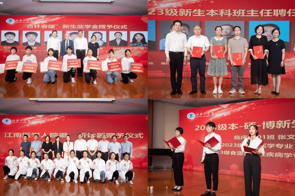 今年学院临床医学本科招生在江苏省高校临床专业组录取分数排名位居全省第三;在江苏省外,有7个省市录取了校内排名第一的最高分。为表彰优秀,树立典型,学院自今年起特设“杏林春暖”新生奖学金,邱贵兴院士、马鑫、笪学荣、向琪共同为来自江苏、安徽、江西、山东、湖北、湖南、贵州等7个省市录取校内排名第一的同学颁发了2023年成人影视片