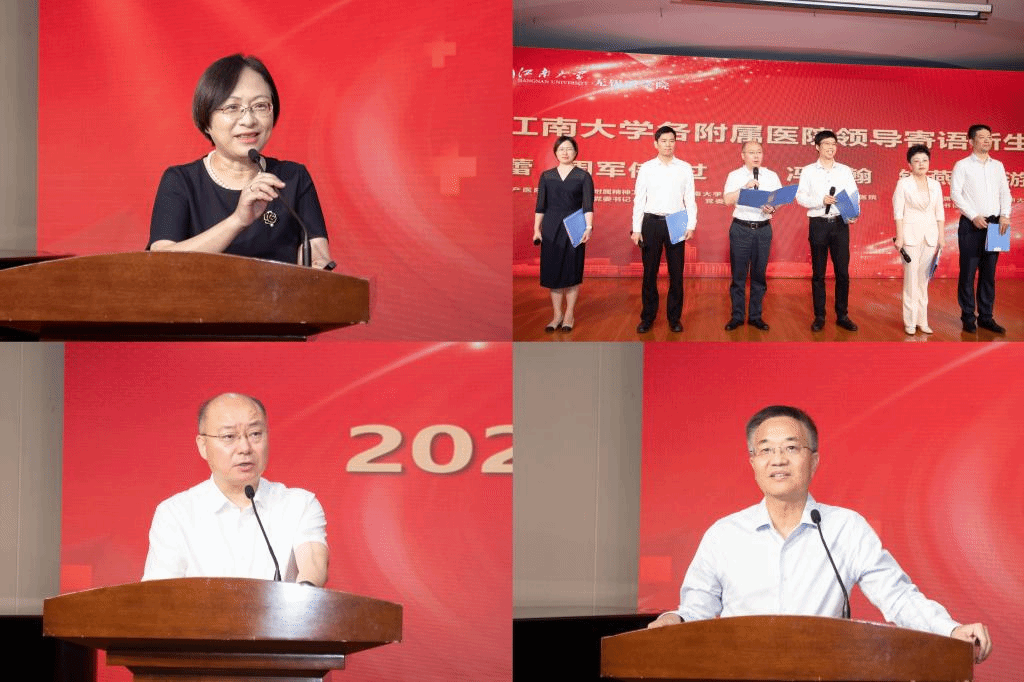 随后,过栋、冯宁翰、周军伟、钱燕华、卫蕾、游庆军等六位附属医院领导为同学们送上新生寄语,希望同学们传承医道精神,在江南书写无悔于时代的青春篇章。