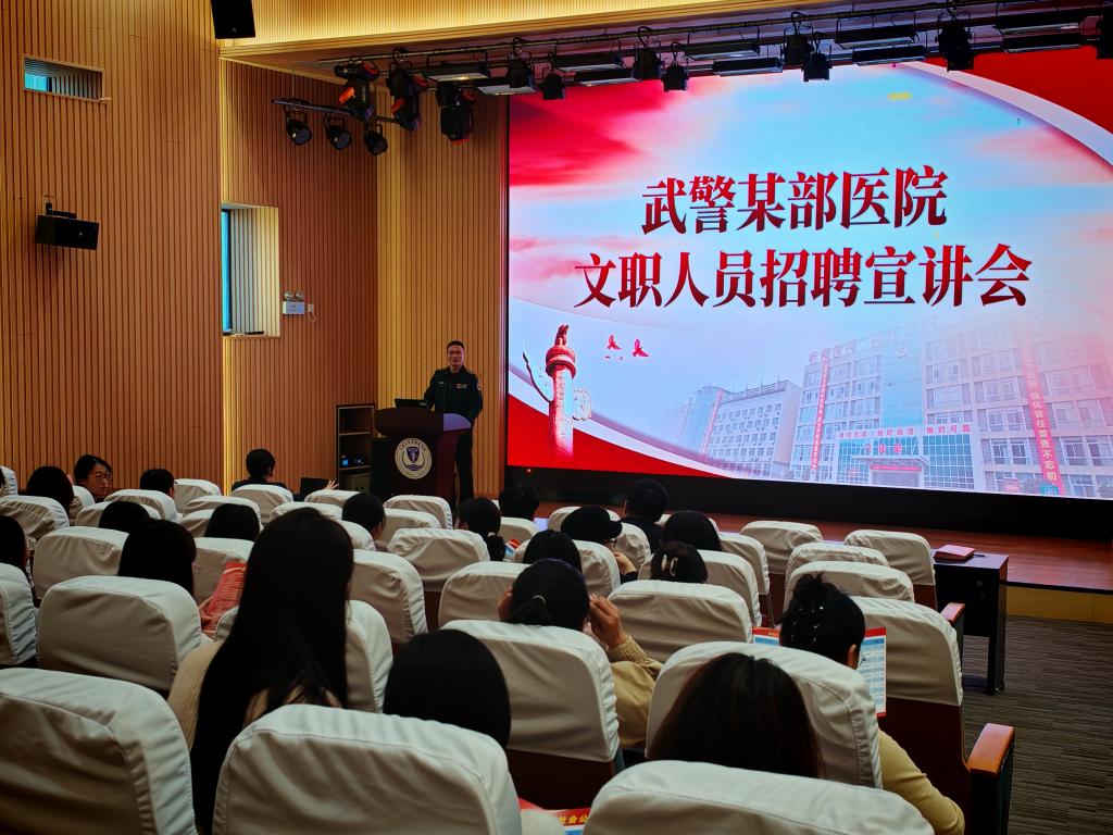 为充分拓宽毕业生就业渠道,搭建毕业生和用人单位交流平台,11月11日下午武警某部医院军队文职专场招聘宣讲会在成人影视片