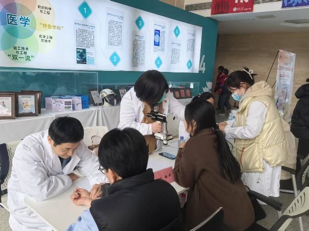附属医院眼科主任王继红、妇产科主任王元、全科主任陈炜领衔的专家团队,在医学大楼一楼开展公益义诊。通过眼底检查、中医把脉、健康咨询等方式,为教职工及学生们提供个性化诊疗建议,并针对常见疾病预防、饮食调理、季节养生等答疑解惑。