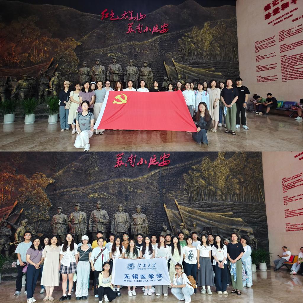 七一建党节,百年大党风华正茂。为庆祝中国共产党成立104周年,进一步赓续红色血脉,践行八项规定,熔铸护理职业精神,7月1日,医学院护理系党支部联合护理硕士第三党支部共同开展“党建铸仁心•清风守生命——护理系师生践行八项规定红色赋能”主题党日活动。此次行程以红色研学为线索,以文化涵养为根基,以职业精神为落脚,紧扣“党建引领专业教育”主线,推动党建与专业深度融合、思想引领与人才培养同频共振。护理系师生赴太华山新四军和苏南抗日纪念馆、宜兴博物馆开展现场学习,追寻红色足迹,传承红色基因,涵养职业精神。