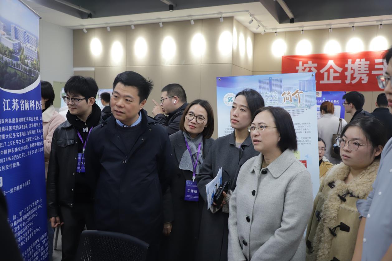 6家附属医院、无锡市人民医院、江苏省原子医学研究所、江苏省血吸虫病防治研究所、江苏省脑科医院、江苏省苏北人民医院以及南通、常州、淮安、兴化等地医疗卫生单位以及扬子江药业、正大天晴、长风药业、济川药业、齐鲁制药等医药名企共70余家用人单位,提供涵盖临床医学、公共卫生、护理学、药学、制药工程等专业的优质岗位1000余个,吸引1500余名本硕博学生到场参加。