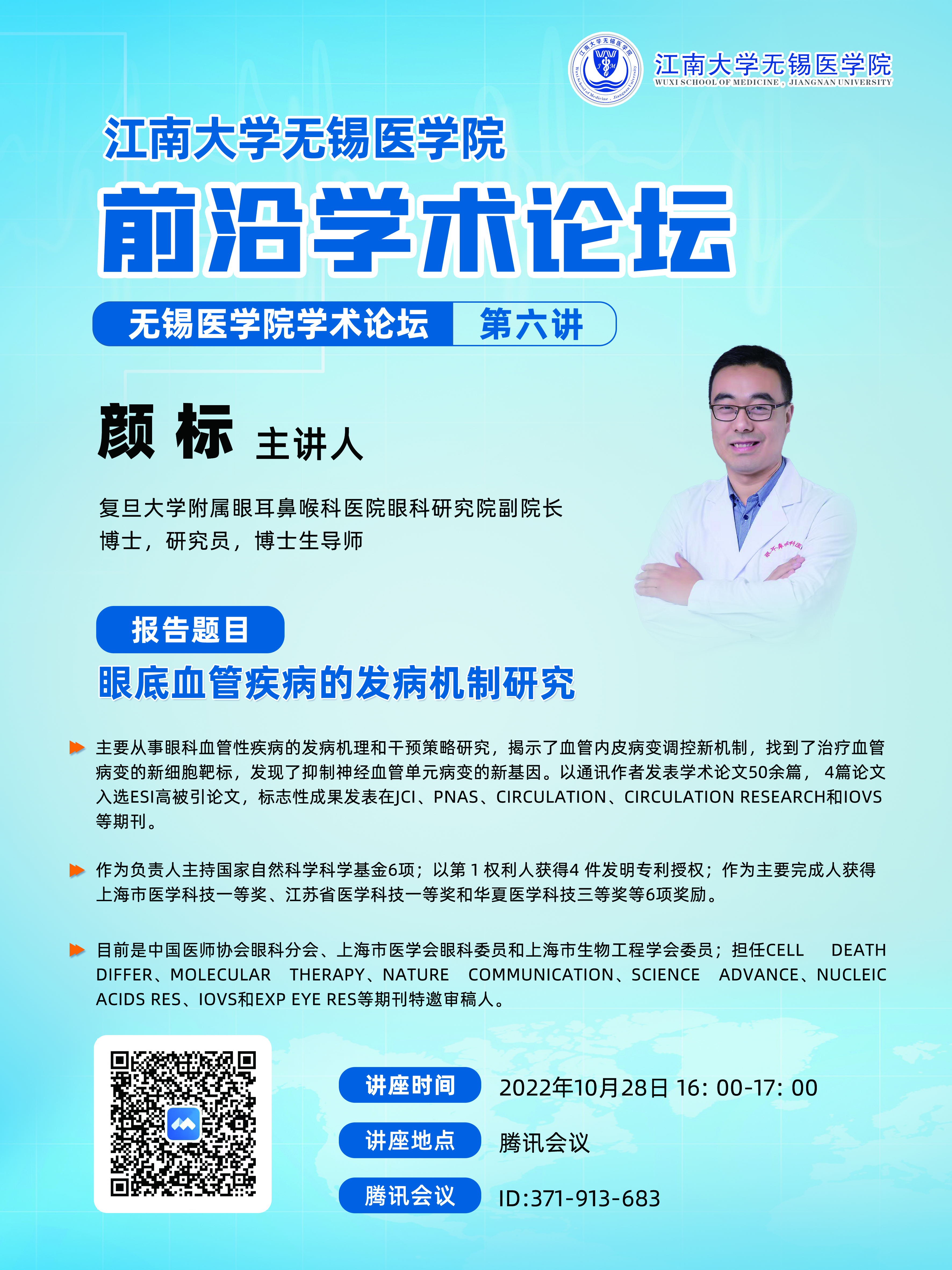 10月28日成人影视片 前沿学术论坛 第六讲——颜标:眼底血管疾病的发病机制研究