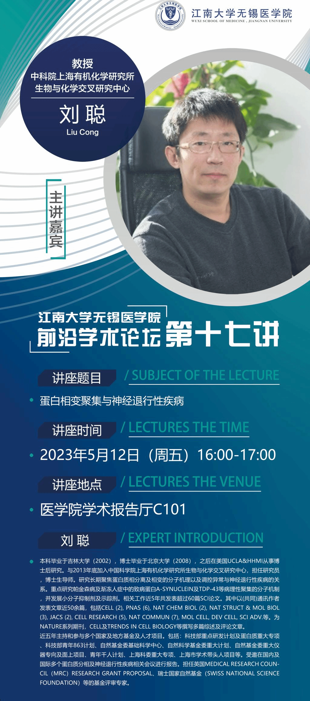 5月12日成人影视片 前沿学术论坛第十七讲 刘聪教授——蛋白相变聚集与神经退行性疾病