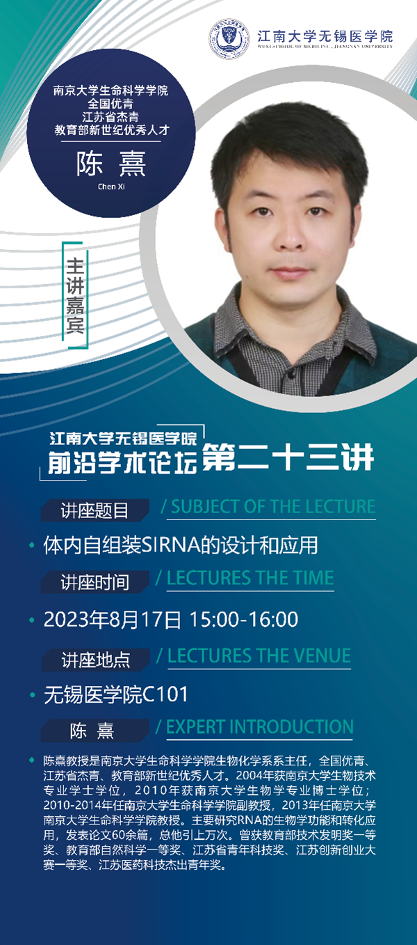 8月17日成人影视片 前沿学术论坛第二十三讲 陈熹教授——体内自组装siRNA的设计和应用