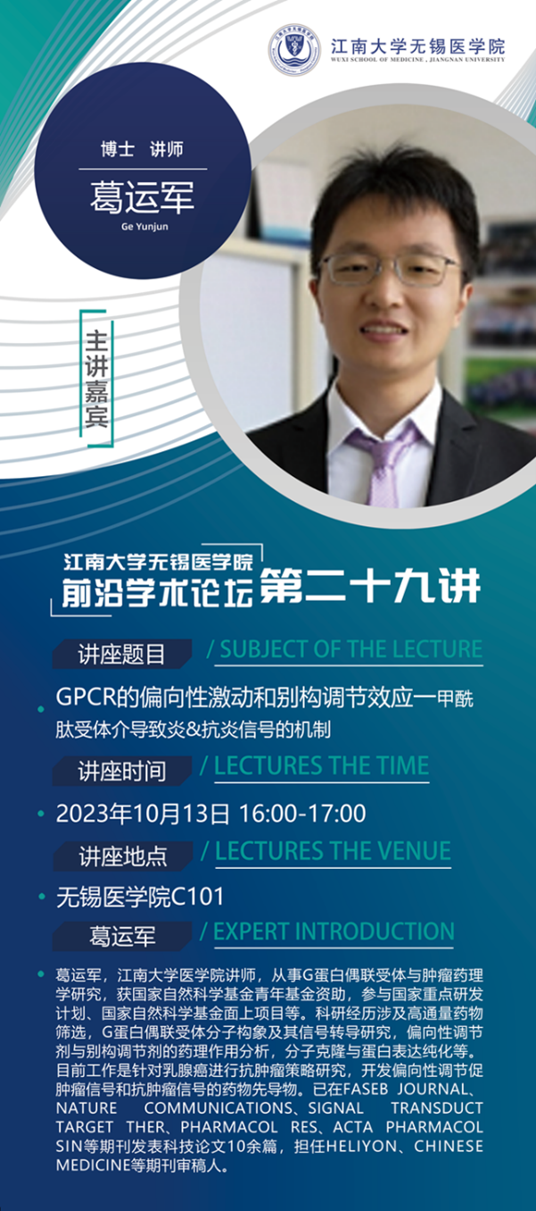 10月13日成人影视片 前沿学术论坛第二十九讲 葛运军教授——GPCR的偏向性激动和别构调节效应—甲酰肽受体介导致炎&抗炎信号的机制