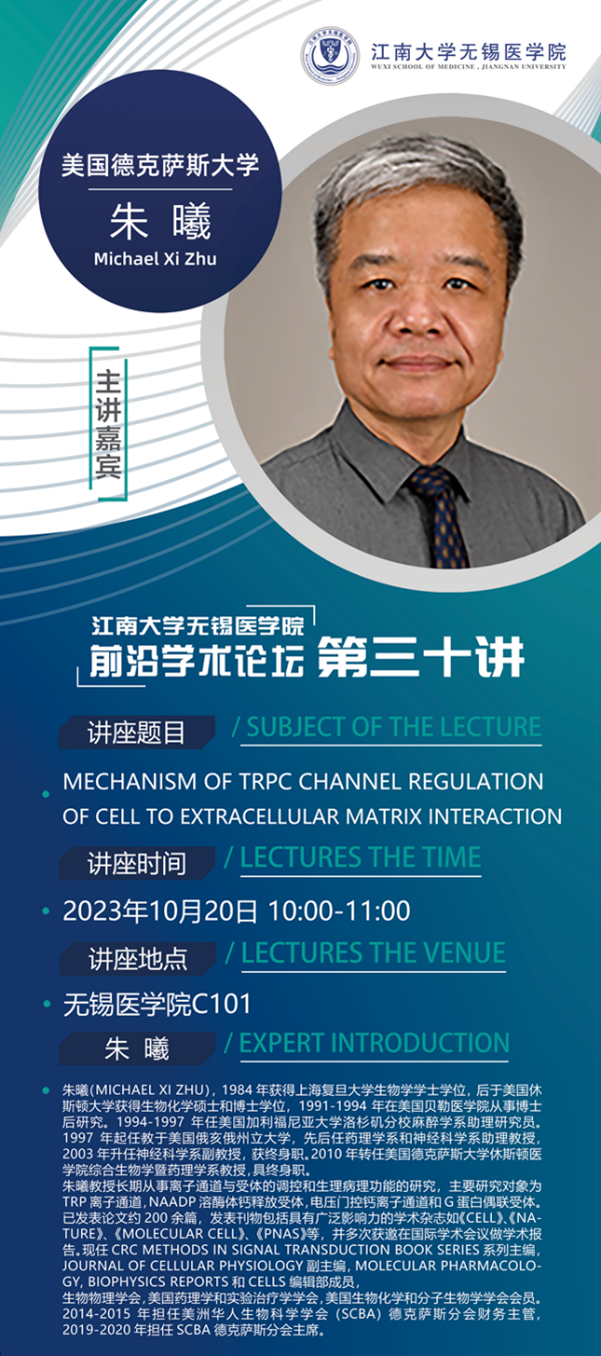 10月20日成人影视片 前沿学术论坛第三十讲 朱曦教授——Mechanism of TRPC Channel Regulation of Cell to Extracellular Matrix Interaction