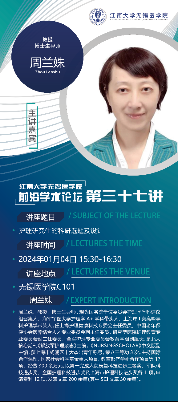 1月4日成人影视片 前沿学术论坛第三十七讲 周兰姝教授——护理研究生的科研选题及设计