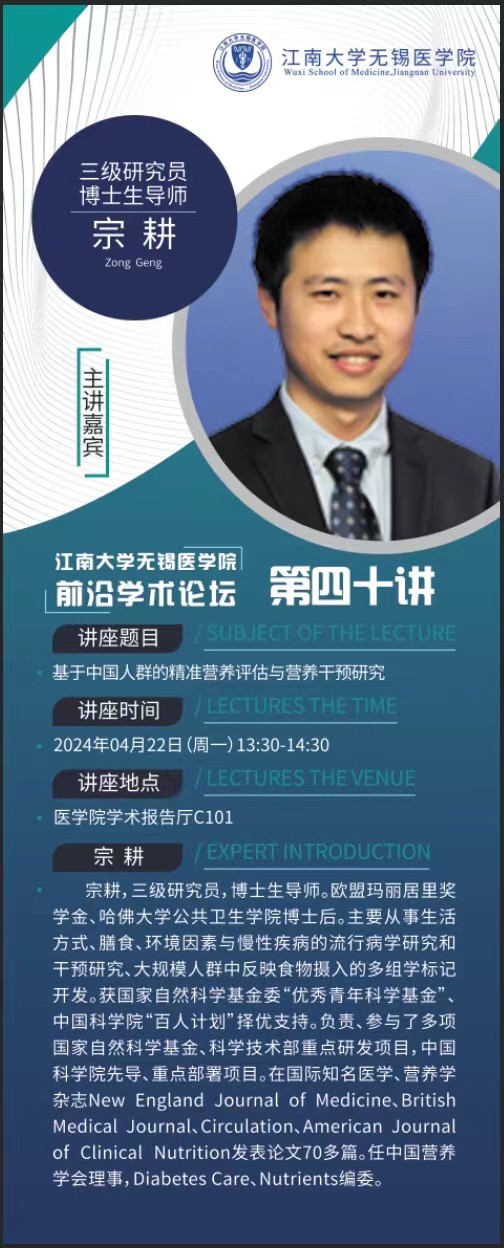 4月22日成人影视片 前沿学术论坛第四十讲 宗耕研究员——基于中国人群的精准营养评估与营养干预研究