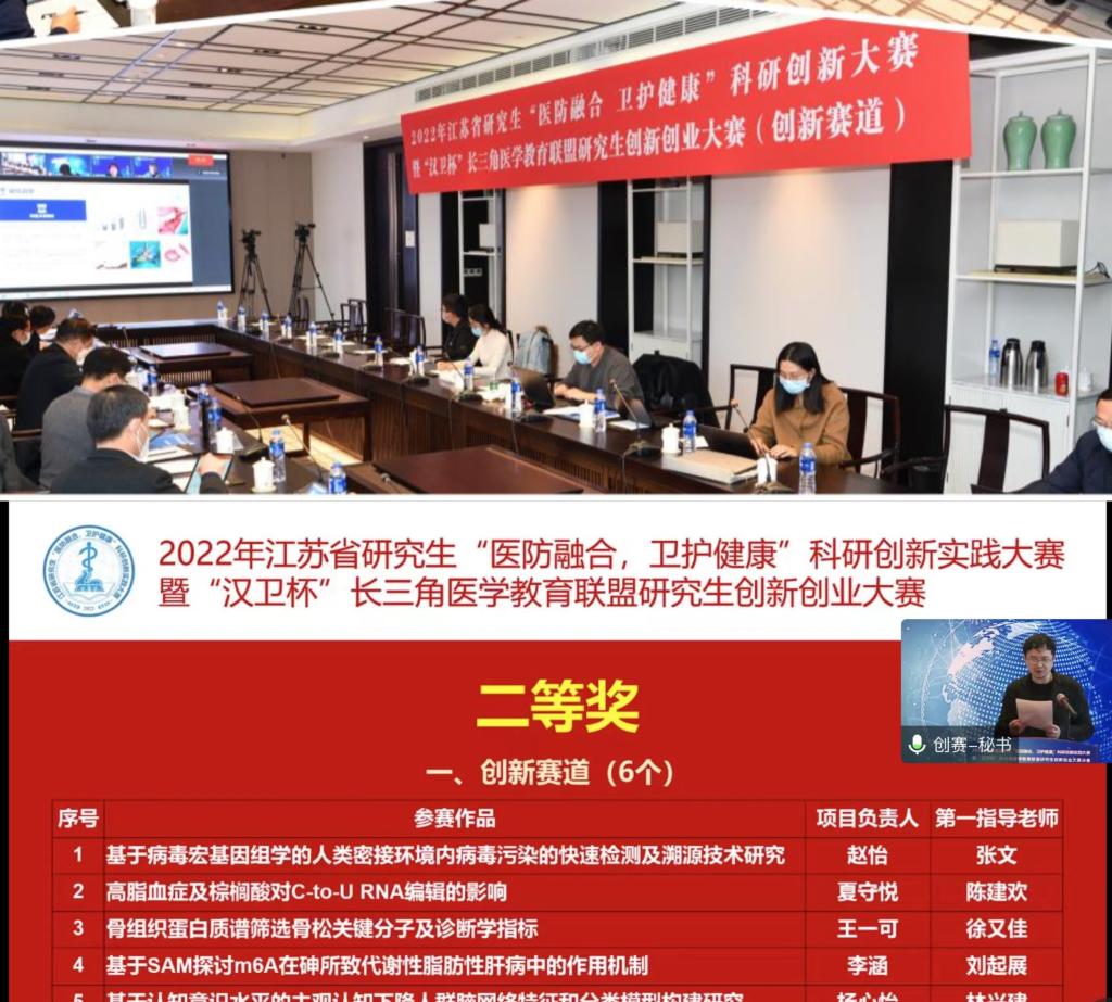 省研究生科研实践比赛决赛作品模拟赛是学院为备战江苏省研究生“医防融合、卫护健康”科研创新实践大赛进行的热身训练。在过去一年,学院针对研究生参与科创活动作出了一系列激励举措,包括自设院级科创项目,增加对科研立项课题的资助等。今年江苏省教指委的科创比赛通知一经发布,同学们报名踊跃,共申报作品36件。经过主办单位为期一个月的初赛,共有4件作品进入决赛。1214日,学院统一组织校内外专家对作品进行专题评审,模拟决赛流程,进行陈述和问答,提出修改建议,有的放矢地帮助大家更好的提高作品质量,也向其他参赛师生进行展示,交流经验。1218日,正式决赛拉开帷幕,经过精心的汇报展示和激烈的投票角逐,我院作品荣获省赛创新赛道二等奖一项、创新赛道三等奖两项、科普赛道三等奖一项,并获优秀组织奖。