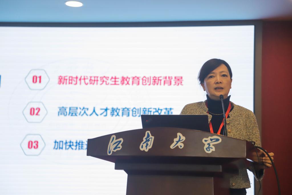 专家讲座环节由柴高尚主持。汪玲教授以“大健康背景下复合型医学人才培养创新实践”为题做开场报告,分享了复旦大学的实践与探索。她表示,加强新医科内涵建设、提升人才自主培养质量是重要的时代使命。发挥综合性大学学科综合优势,健全以行业需求为导向的人才培养体系,设置交叉学科,建立“医学+X”多学科交叉融合平台和机制。任学梅教授以“国家发展与教育改革 医学研究生教育的创新与实践”为题,围绕课程教学改革、科研创新能力培养、培养模式改革、培养质量监督与保障等方面,分享了医学创新人才培养经验;“江南讲坛”第九十九讲,吕欣教授以“西北产细菌素乳酸菌的挖掘与功能初探”为题,详细介绍了产细菌素乳酸菌分离、纯化细菌素分离及其理化特性研究等工作。