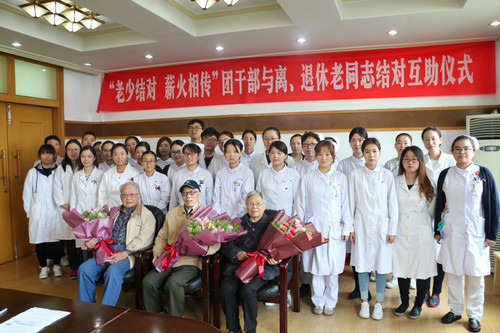 为进一步弘扬尊老敬老传统美德,学习老同志脚踏实地、艰苦奋斗的革命精神,近日,附院团委举办“老少结对 薪火相传”团干部与离退休同志结对互助仪式。会议由团委副书记孙辰主持,离休党支部书记杨玉梅,省“医师终身荣誉奖”获得者、离休干部鲁平,省“医师终身荣誉奖”获得者、83年前老高知归仁,全体团干部,青年文明号号长及团员代表等30余人参加了此次会议。