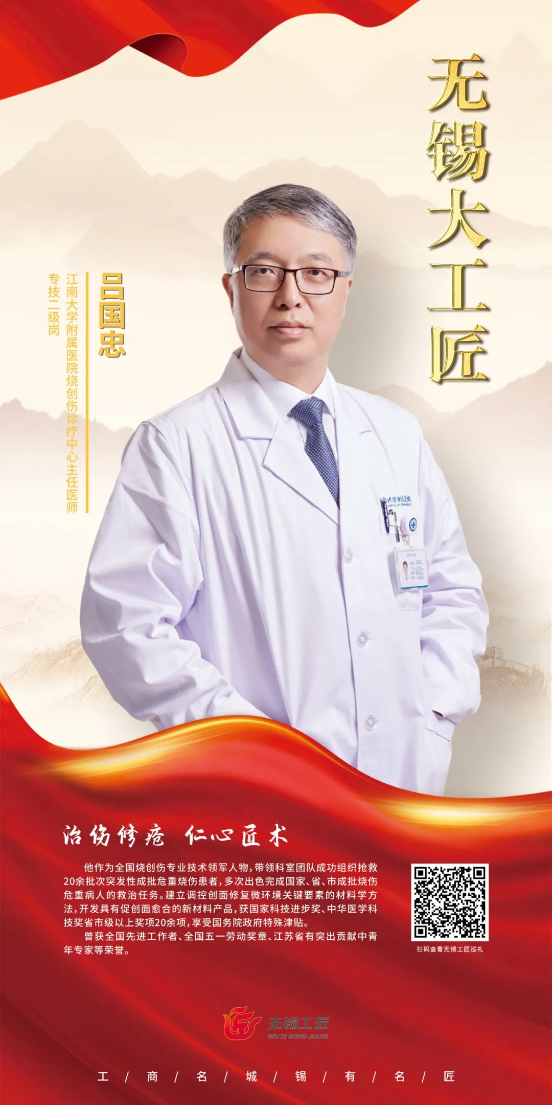 附属医院烧创伤诊疗中心主任吕国忠获评“无锡大工匠”。