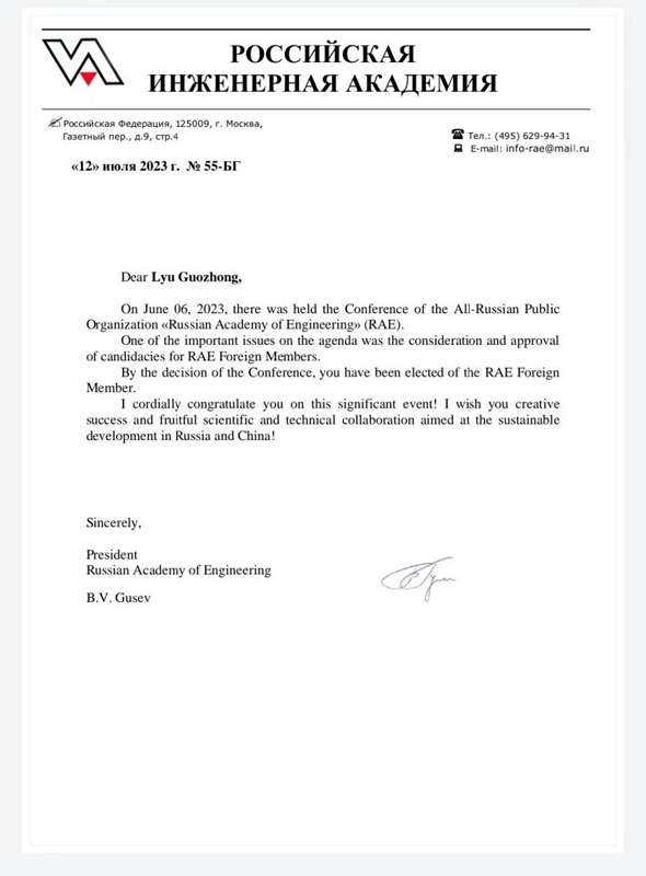 俄罗斯工程院通过形式审查、材料审核,会议答辩评审、工程院主席团会议表决通过、院士大会选举等流程严格评选,基于吕国忠教授在烧创伤治疗领域所做出的卓越贡献,评选他为俄罗斯工程院外籍院士,希望未来他为俄罗斯与中国在相关领域的可持续发展做出更多创造性和富有成效的贡献。