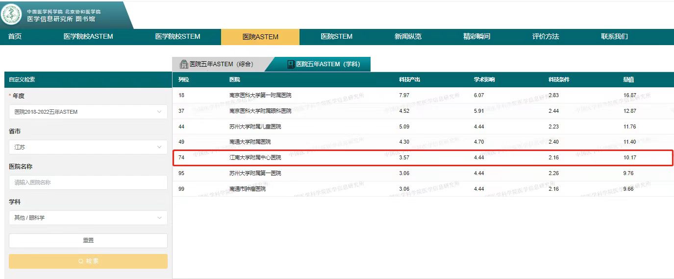 7月6日,2022年度中国医学院校/中国医院科技量值(STEM)暨2018—2022五年总科技量值(ASTEM)在北京发布。无锡市第二人民医院(成人影视片