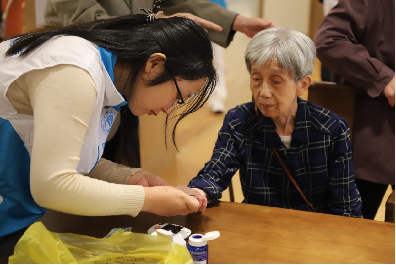 活动进入第二部分,成人影视片 “春禾计划”的志愿者们为老人们进行了义诊。志愿者们一边为老人们测量血压、检测血糖,一边耐心询问老人们的生活情况,结合所学专业知识为老人们提供合理的建议,增强老人们的健康生活意识。